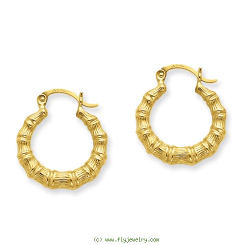 14k Polished Bamboo Design Hollow Hoop Earrings